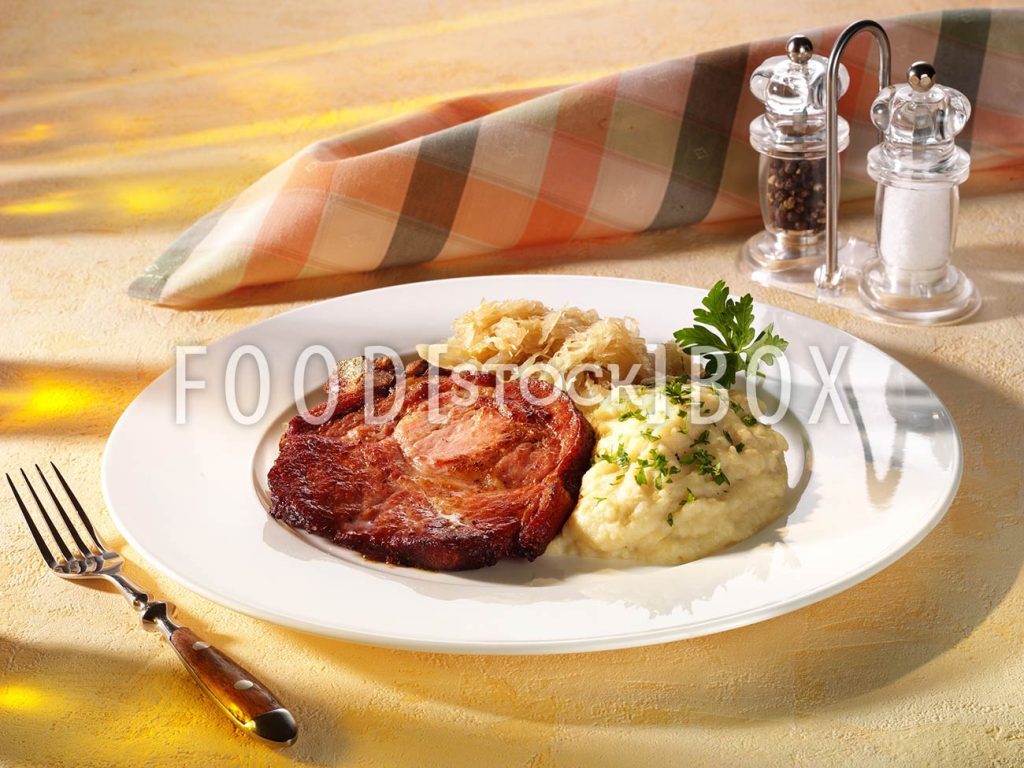 Kassler an Kartoffelpüree mit Sauerkraut