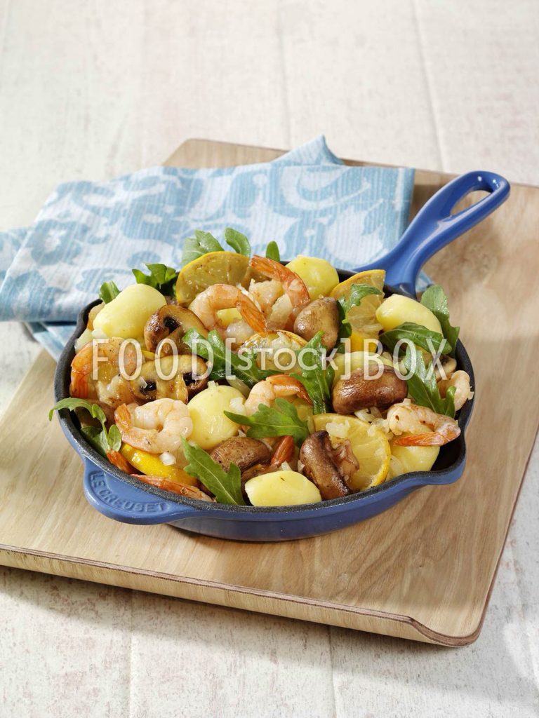 Kartoffel-Champignon-Pfanne mit Zitronengarnelen / Diabetiker